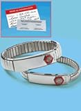 When you're sick, injured or unable to talk-this medical I.D. bracelet will alert medical personnel that you have a health condition that requires special attention. It has a medical alert symbol on the tab that flips open to display your special instructions. Comes with preprinted stickers for allergies, diabetes, cardiac status and general medical conditions; plus, there is a card for your wallet so you can fill in more information about your problems, blood type, contact information, etc. Made of stainless steel with a comfortable stretch band.